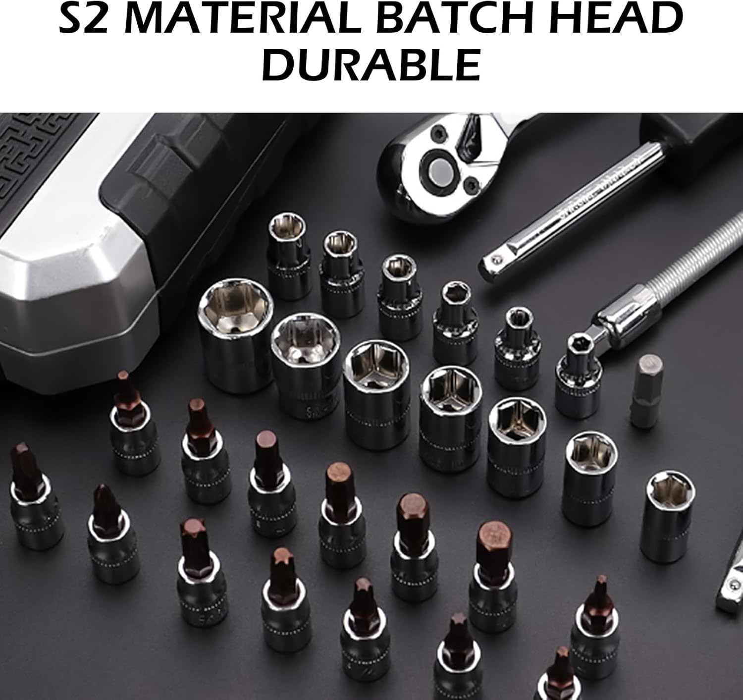 | Included Components | 1Pcs 1/4 DR 6" Flexible Extension ,1Pcs 1/4 DR Sliding T-Bar, 1Pcs 6 Spinner Handle, 1Pcs Bit Adapter, 1Pcs 72 Tooth Ratchet Wrench, 1Pcs 1/4 DR 2" Extension Bar, 1Pcs 1/4 DR 4" Extension Bar, 21Pcs Bit Sockets, 13Pcs 1/4 DR 1" Metric Sockets, 6Pcs 1/4 DR 2" Metric Sockets ,3Pcs Hex-Wrenches |