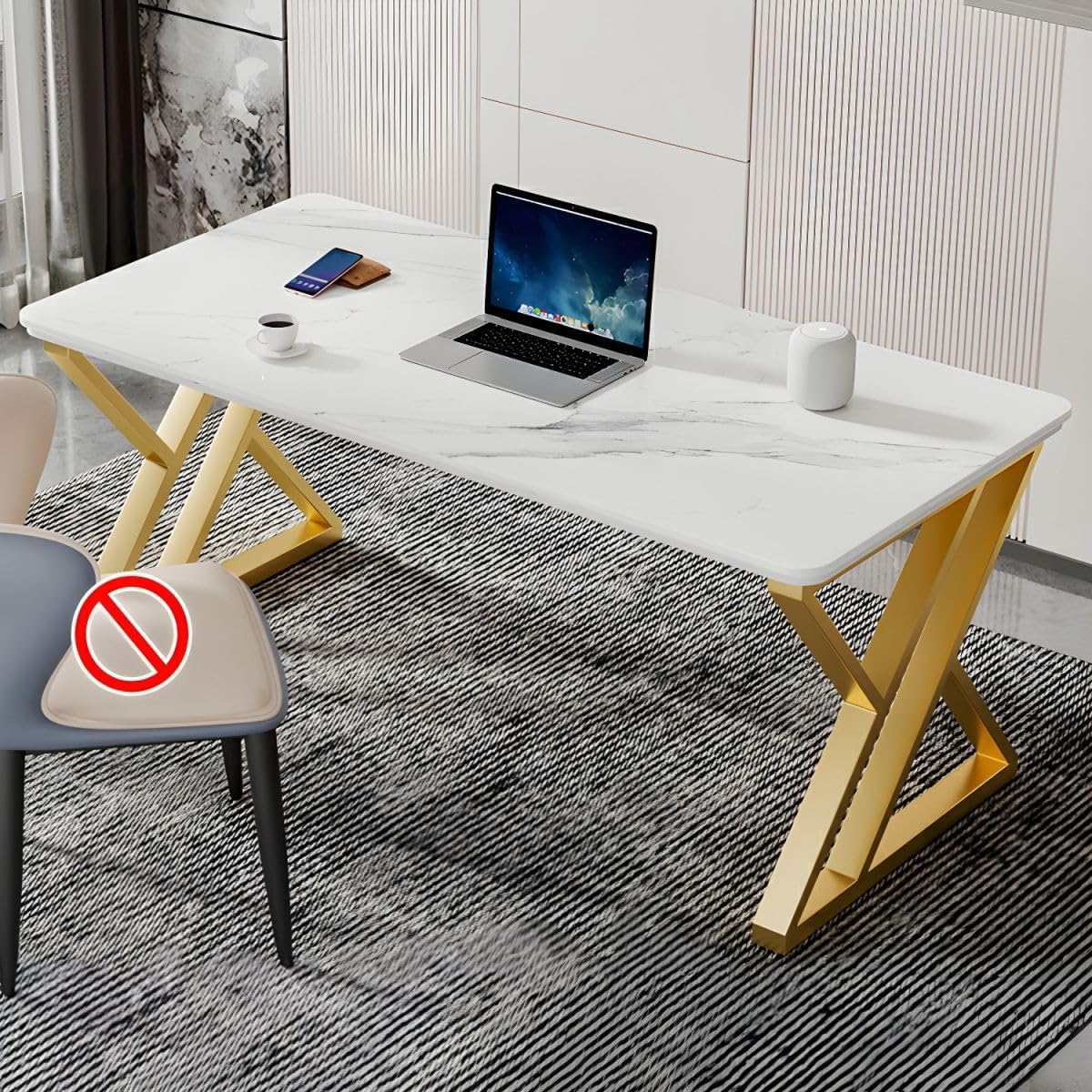 ◆Product Details: Style: Modern Desk Type: Writing Desks Shape: Rectangle Base Material: Steel Base Type: Sled Height Adjustable: Non-Adjustable Height ◆Dimensions: Overall Table Length - End to End: 55" (140 cm) Overall Table Width - Side to Side: 23.5" (60 cm) Overall Table Height - Top to Bottom: 29.5" (75 cm) Desk Return Included Desk Return Not Included ◆Features: 💛Premium Board We use high quality Stone top to ensure its long lasting use. Waterproof and superior resistance to scratches. 💛Heacy Duty Steel Frame Crafted with strong Steel enhances the stability and durability of the whole desk, while easy to set up. 💛Splice Board Design Combine different colors of table top and legs perfectly, shows a unique display of delicate charm, makes your space look more stylish. 💛Spacious Work Surface: This simple but well-designed table can make your daily work full of creativity.