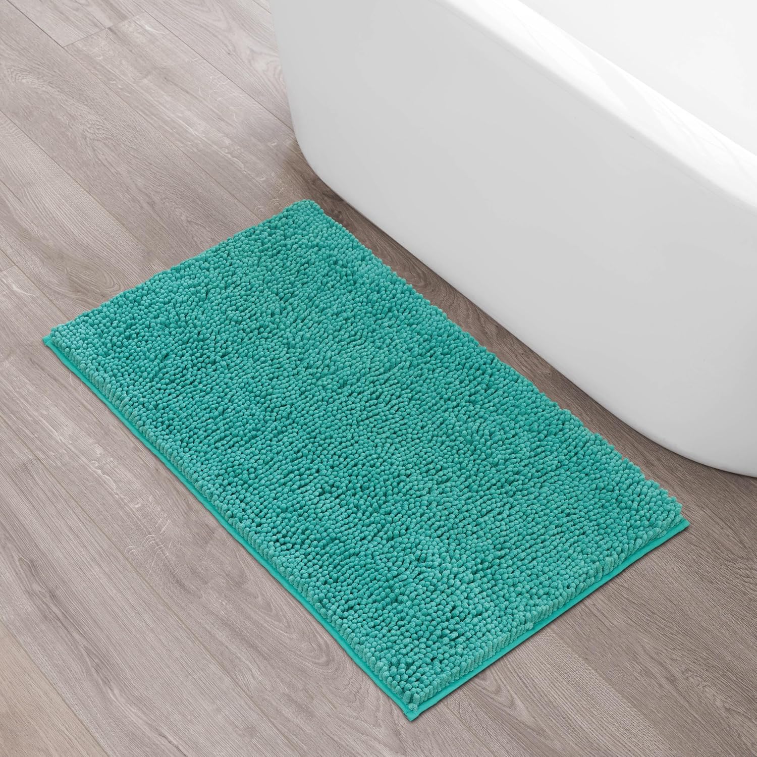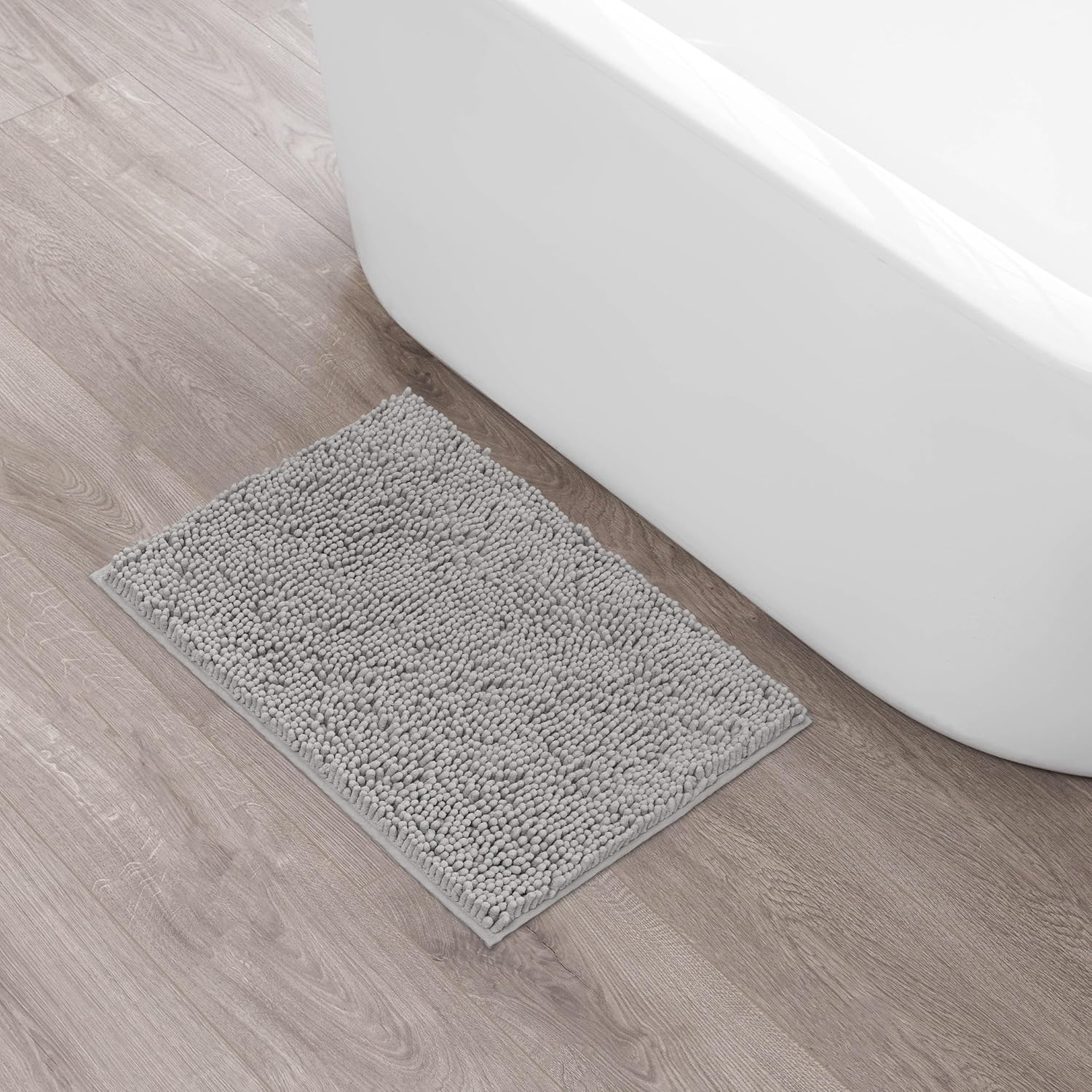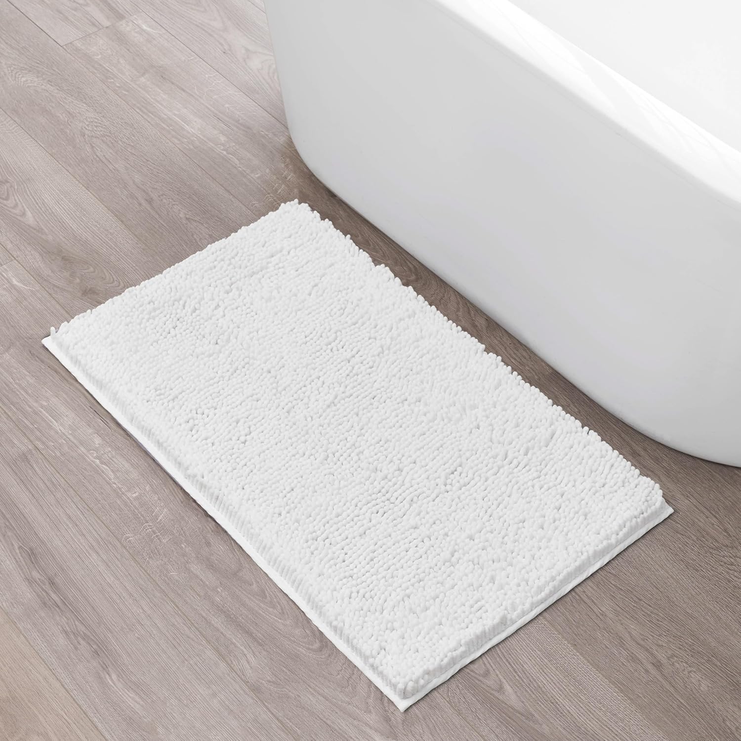 Treat your feet to super-soft-and-absorbent plush shag chenille bath rugs. Non-skid backing keeps mats firmly in place. Twill binding finish maintains shape for long-lasting use. Stain-resistant fibers are machine washable. Place on a clean, dry surface. 100% polyester. Imported.
