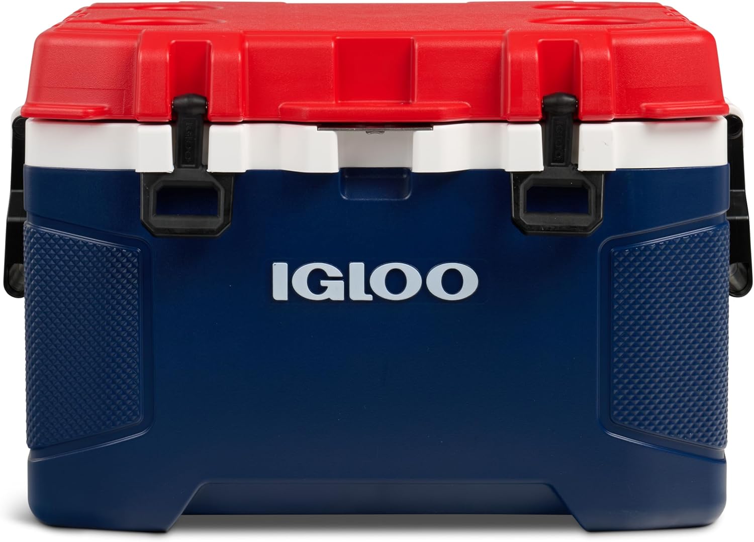 A key member of our always-up-for-adventure Trailmate Series, this spacious 50-quart Trailmate ice chest will help invigorate your journey. Super rugged — thanks to its bold, sturdy construction — with long-lasting ice retention and extra-handy features (bottle opener, lockable lid, cup holders, drain plug…), this is the American-made hardside cooler that should never miss out on your outdoor fun. Product Details Left Made in the USA Heavy-duty blow-molded construction provides advanced durability Extra-thick 1.5-inch foam-insulated walls & insulated lid for extended ice retention Cool Riser Technology improves cooling performance by elevating cooler body away from hot surfaces The first Igloo cooler to feature the Sure-Lock rubber latches that make it a cinch to fasten with two fingers & provide a secure closure to lock in the cold Side handles designed extra wide with a reinforced crossbar & diamond-textured grip for a secure, comfortable hold Oversized, heavy-duty hinges add durability & extend product life Lid features a locking plate & a leak-resistant gasket to keep contents securely inside (lock not included) Threaded drain plug gives you the option to hook up to your water hose for easy draining & includes an easy-grip cap with a stainless steel tether Dual-sized self-draining cup holders in the lid fits a variety of can/bottle sizes, keep your drinks secure & within reach Locking plate serves as a built-in bottle opener to help you quickly & conveniently enjoy your bottled beverages Self-stopping hinge détente keeps the lid open UV inhibitors protect the cooler from sun damage Put the size into perspective: Holds 81 cans Item #: 00050220 Care Instructions Left Wipe interior and exterior surfaces clean before storing and between uses. To prevent stains and odors, empty cooler of contents after use. Light dirt or stains can be cleaned with water or mild detergent. Tougher stains may be cleaned with diluted solution of baking soda and water. Ensure all cleaning agents are thoroughly rinsed and the cooler is dry before storage. Capacity:81 12-oz cans50 quarts Weight:15.35 lbs6.96 kgs Exterior Dimensions ( L x W x H ):25.7" x 18.08" x 16.7"65.27 cm x 45.92 cm x 42.41 cm