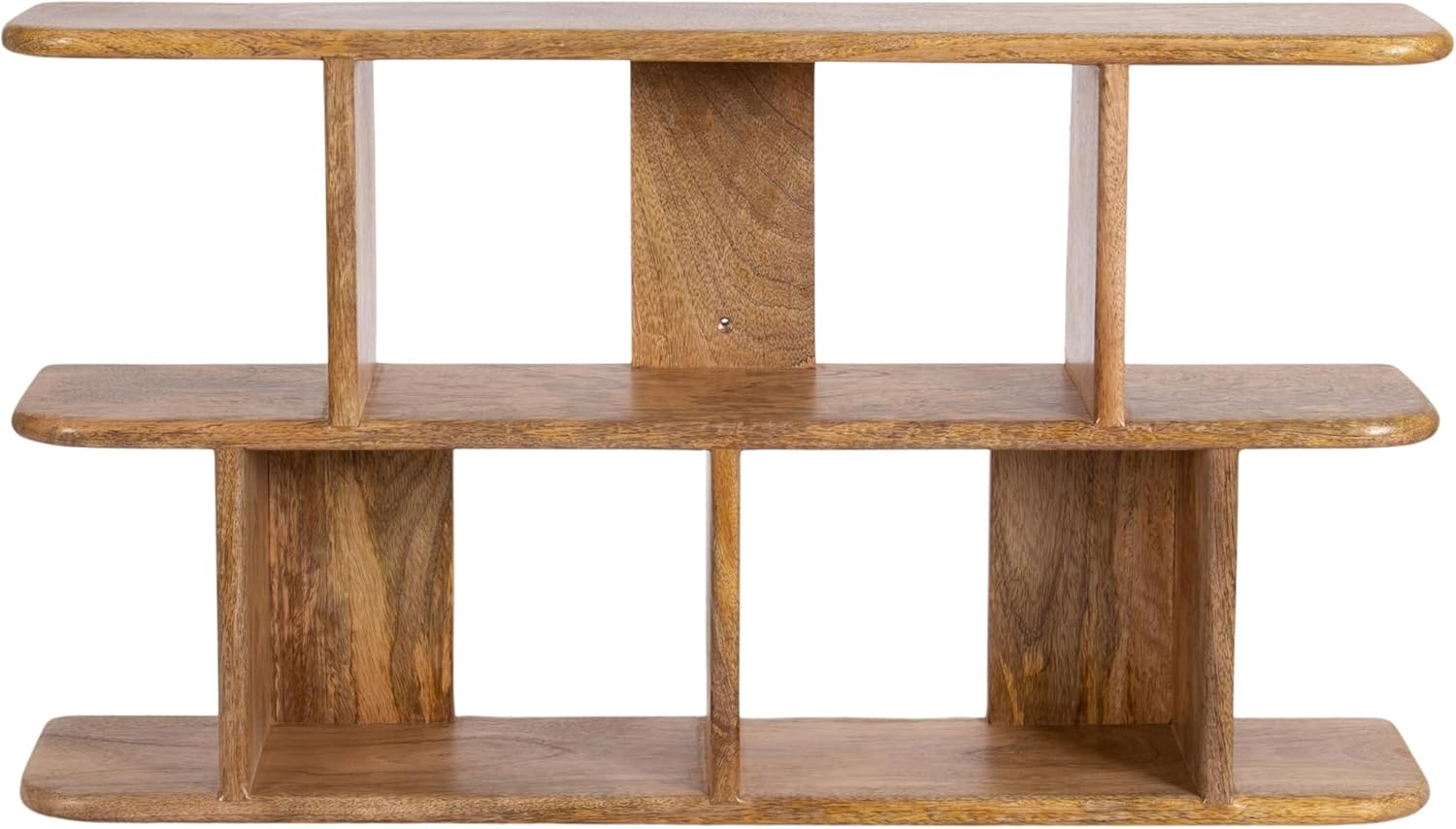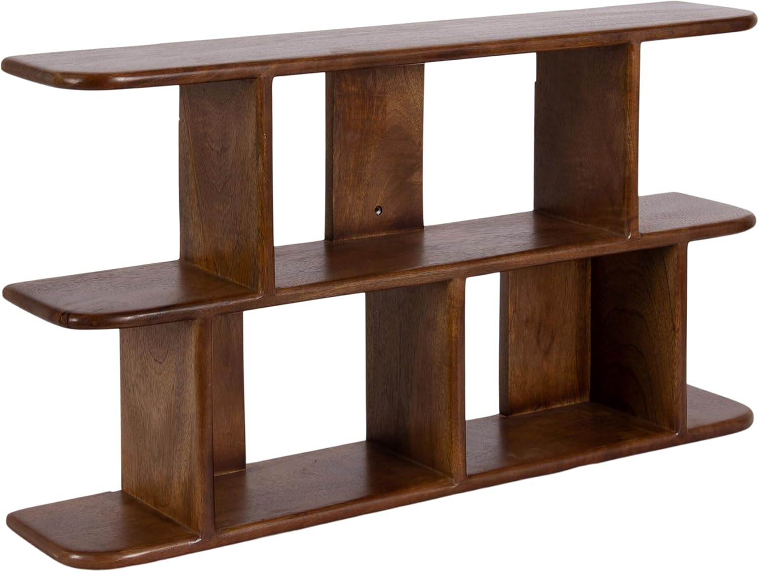 Create a sophisticated wall display that takes inspiration from transitional design with the wooden Madero wall shelf from Kate and Laurel. Indulge in the clean lines and minimalist design with its solid mango wood construction. Due to its solid wood design, each Madero shelf features natural wood grain that makes each piece one-of-a-kind. With attached keyhole hangers, you can hang this wall shelf vertically or horizontally in three total hanging orientations. The various shelf platforms resemble a ladder, providing you with multiple options for how you want to display or store your everyday essentials or entryway decor accents. The overall dimensions of the Madero wall shelf are 30 inches wide by 5.5 inches deep by 16.5 inches tall. The clean and straightforward design and natural wood finish look excellent installed in various living spaces, such as the living room, bedroom, entryway, bathroom, or dining room! You could also use the tiered design to create a unique bookshelf option for small novels and other books. Each Madero wall shelf features metal keyhole hangers attached to the back of the frame for quick and easy installation in no time.