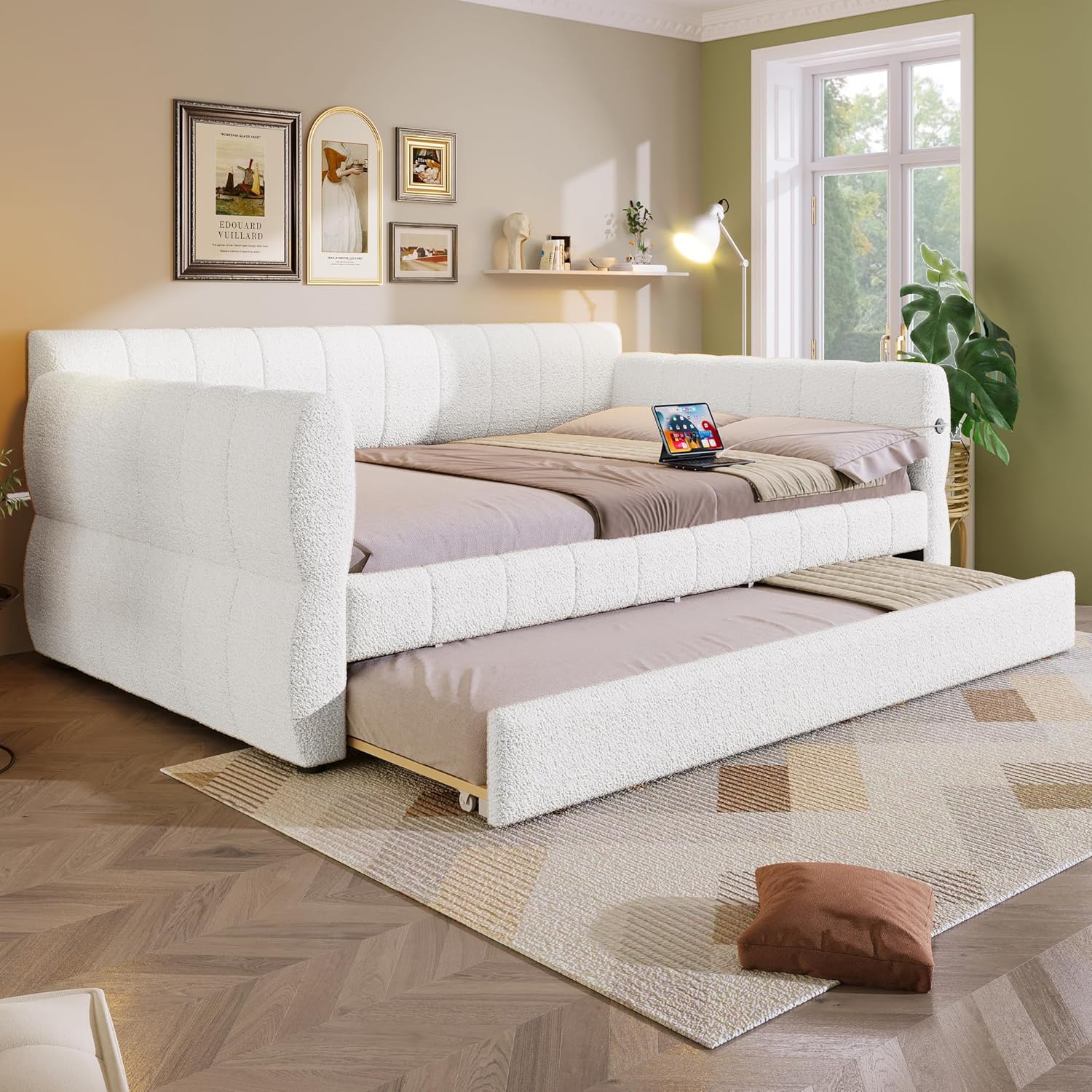 • Multifunctional Sofa & Bed: This upholstered day bed can be used as a comfortable sofa in the living room or as a cozy bed frame, providing a sleeping area for adults, boys, girls, and kids.