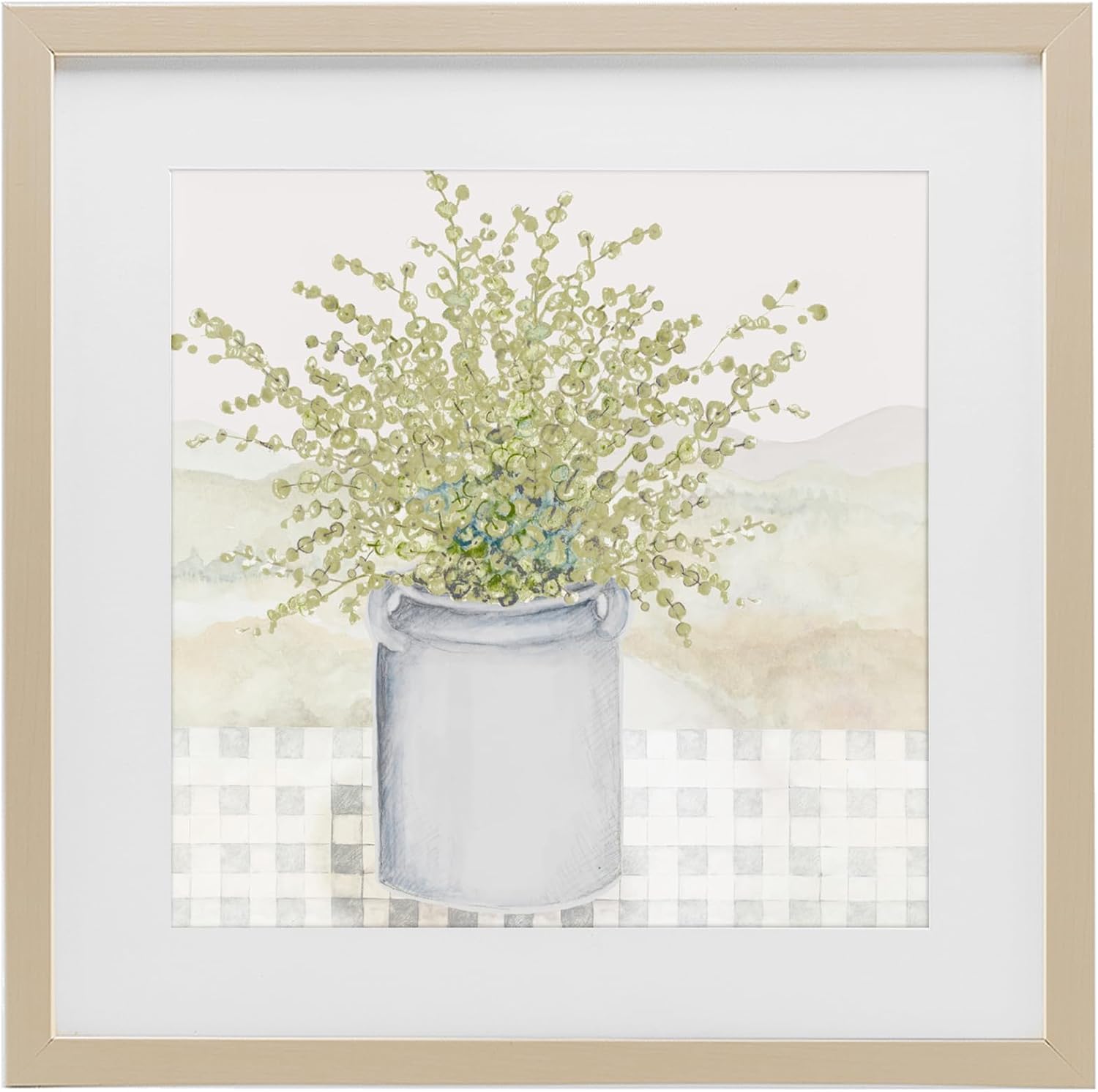 Our Framed Print Under Glass is a modern way to display art with a crisp, clean finish. A digitally printed paper is framed with a white mat under durable PETG plastic. The bevel cut mat is made of paper pulp mat board. The frame is constructed from real wood with a wrapped finish. It includes a pre-installed sawtooth hanger for easy hanging. Available in black, birch, gray and white finishes.