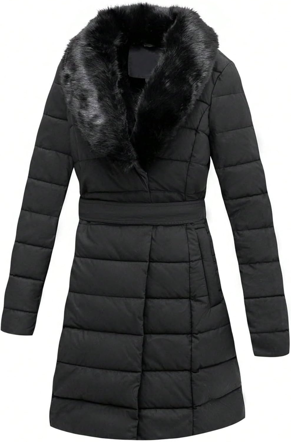 This long coat has a removable faux fur collar & plush sherpa - lined interior for comfort. Adjustable belt highlights silhouette, mid - length cut flatters figure. Premium craftsmanship with windproof durability & soft touch. Versatile for work, school, or outdoor activities. Easy care: wipe clean, handle fur collar gently