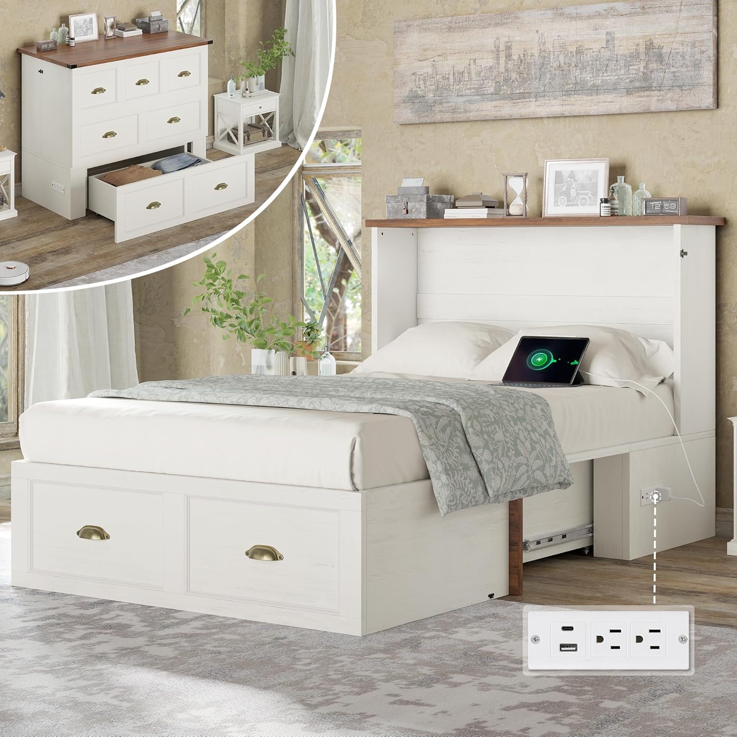 | Included Components | Anti-tipping Device, Cabinet Bed, Charging Station, Large Drawer, Wheeled |