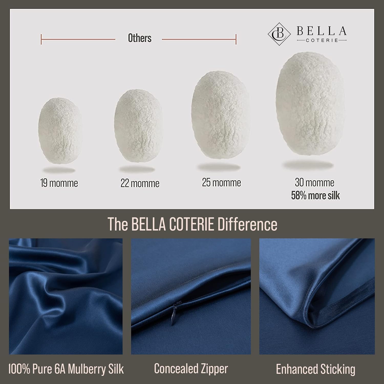 • THE BC GUARANTEE-Here at BELLA COTERIE we're on a mission to level up your beauty sleep. Treat yourself to our silk pillowcases risk-free for 30 days with our 100% customer satisfaction guarantee. Once you sleep in the lap of luxury, you'll never go back!