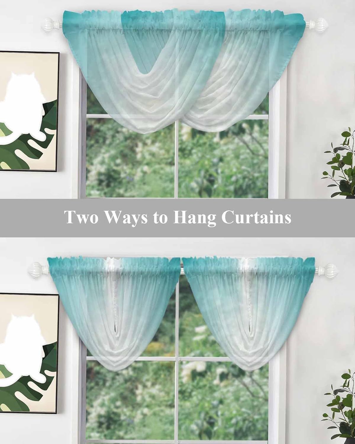 Are you looking for a curtain can not only brighten up your home decorations, but also blockout unwanted strong lightsAre you annoyed at the outside directly strong sunshines do darm to your plants or furnituresDo you always look for a beautiful waterfall valance to light filter sunshine and provide privacyHere Our valance collection offers a transitional look to upgrade your space with a bit of modern elegance.A waterfall valance curtains for kitchen windows achieve many things at one stroke.Material: Made of high quality polyester sheer, sturdy and strong, soft to the touch, good stitched and hemmed, double needle sewn ensure the window treatments curtains for long lastings.Available Sizes: 38.5'' x 47.2'' --1 drape38.5'' x 47.2'' --2 drapes38.5'' x 47.2'' --3 drapesRod Pocket Design:Rod pocket is more convenient than grommet. 3'' pocket with 1'' header tailored valance can meet almost standard rods/decorative rods/tension rods up to 2'' dia.Scalloped Design:Buy with bulk can achieve scalloped design, can make a dull window beautiful and elegant.Alternative Patterns:You must have beauty fatigue about the solid color waterfall swag curtain. Our luxury sheer waterfall swag curtains with various patterns, chic colors, vivid pictures to dress up your rooms.Modern/abstract/flower/animal/coral/turtle/plaid/tulip/wildflower/rustic/vintage/striped/funny/polka dot/marble/farmhouse/country french/geometric/eucalyptus leaves and so on.Perfect Gifts:Waterfall valances for windows with printed patterns can be given out as gifts no matter when it is.Valentine/easter/spring/summer/halloween/thanskgiving/Christmas/New Year/Mother's Day/Father's Day/Wedding/baby shower/party decorations.