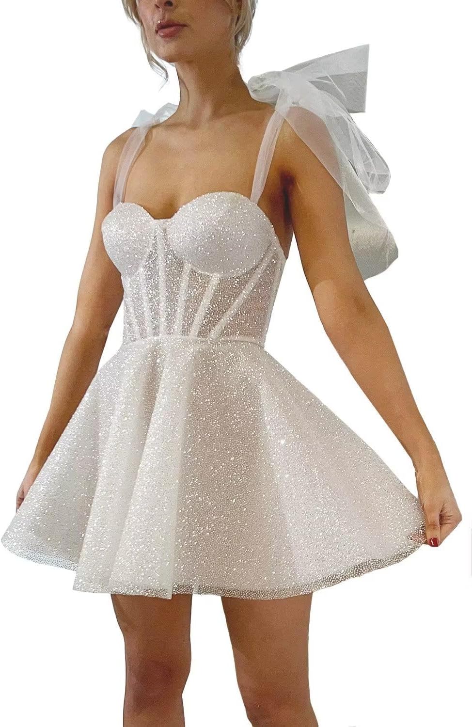 | Embellishment Feature | Bachelorette Outfit for Bride, Fairy Lace Wedding Dresses Short, Rehearsal Dinner Dress for bride, Wedding Reception Dress Short, White Short Bridal Shower Dress |