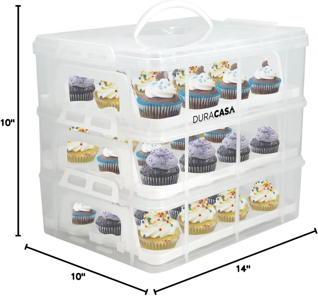 The DuraCasa Pro Cupcake Carrier Takes the Cake Your search for the PERFECT CUPCAKE CARRIER is OVER! Home-bakers across the country and around the world know how hard it can be to carry and store frosted cupcakes safely. After investing so much precious time baking and decorating these tasty little treats, you don’t want to see a crumb or sprinkle out of place when you reach your destination. Worry no more! The multi-purpose DuraCasa Pro Cupcake Carrier is the cupcake holder of your dreams. Not only will this awesome cupcake carrier keep up to 36 cupcakes safe from harm, you can also use it to carry all kinds of baked goods and pastries. * Carry three dozen frosted/ unfrosted cupcakes * The advanced snap-to-lock clamps keep the layers of our cupcake holder firmly together * Use one layer or both together thanks to the flexible stacking system * Choose from a great range of colors (tray is colored): White/ Blue * Pack this lightweight cupcake carrier with goodies, grab the durable handle and go * Made of high-quality materials and is BPA-free The DuraCasa Pro Cupcake Carrier is a must-have if you want to keep your cupcakes perfectly pretty! Use it for all kinds of parties, work events, weddings and picnics. It’s also an ideal gift for people who love to bake …A cupcake is happiness with sprinkles and frosting on top; make sure your cupcakes keep their sprinkles with a DuraCasa Pro Cupcake Carrier! CLICK ADD TO CART NOW! Order your DuraCasa Pro Cupcake Carrier today. How about ordering two, one for you and one for someone special.