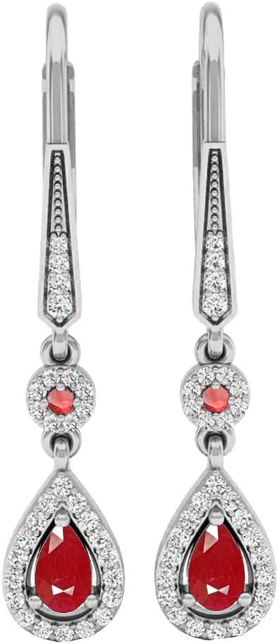 This lovely teardrop dangling drop earrings feature 6X4 MM each pear & round lab created Gemstone & round & 0.30 ct. white diamonds in prong-setting. All white diamonds are Natural & non-treated, minimum diamond color is I-J & clarity is I1-I2. Our product includes a complimentary jewelry box for safe storage and presentation. SKU # LC1555