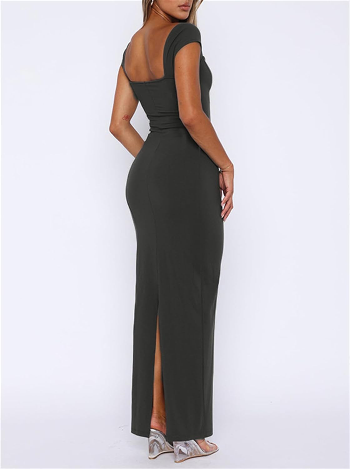 Women's Bodycon Long Dress Sexy Scoop Neck Solid Color Fitted Formal Dresses Size Chart XS Bust: 26.8"-33.5"; Waist: 21.7"-25.2"; Hips: 29.1"-35.4"; Sleeve Length: 22.8"; Dress Length: 59.8"; S Bust: 28.3"-35"; Waist: 23.2"-27.2"; Hips: 30.7"-37.4"; Sleeve Length: 23.2"; Dress Length: 60.2"; M Bust: 29.9"-36.2"; Waist: 24.8"-28.3"; Hips: 32.3"-38.6"; Sleeve Length: 23.2"; Dress Length: 60.2"; L Bust: 31.5"-37.8"; Waist: 26.4"-29.9"; Hips: 33.9"-40.2"; Sleeve Length: 23.6"; Dress Length: 60.6"; XL Bust: 33.1"-39.4"; Waist: 28"-31.5"; Hips: 35.4"-41.7"; Sleeve Length: 24"; Dress Length: 61";