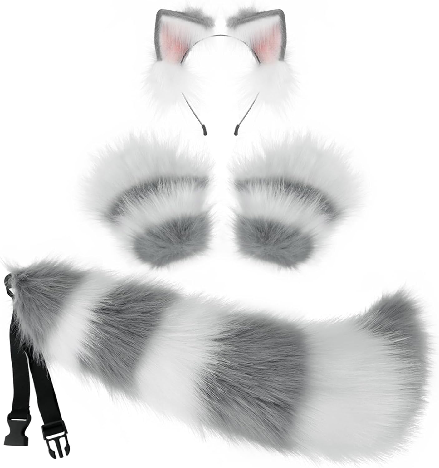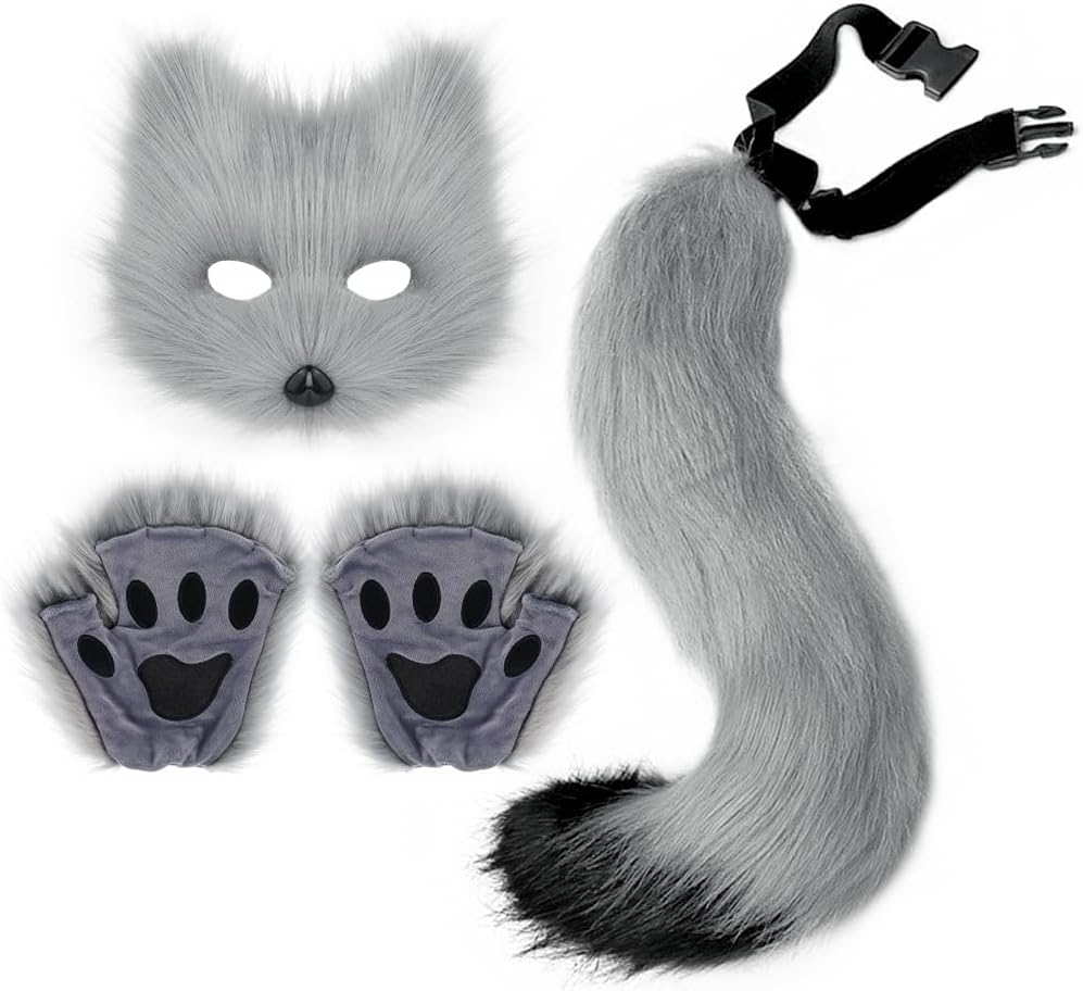 Cat Fox Wolf Cosplay Costume Kitten Tail Ear Claw Glove Set Anime Halloween Party Accessory SuitUnique design and perfect accessory, easily complete animal dress up and create a cute appearance like wolf, fox, cat, etc, make you more charming and stand out in the party.The cute fox ears headband and tail glove set are perfect for girls and women daily wearing and party decorating,such as Christmas, Halloween, Masquerade, Carnival,birthday party,cosplay costume,festival show, home party or other occasions.How to make the tail more fluffy: when you receive it, you need to shake the tail upside down, it will become fluffy again.
