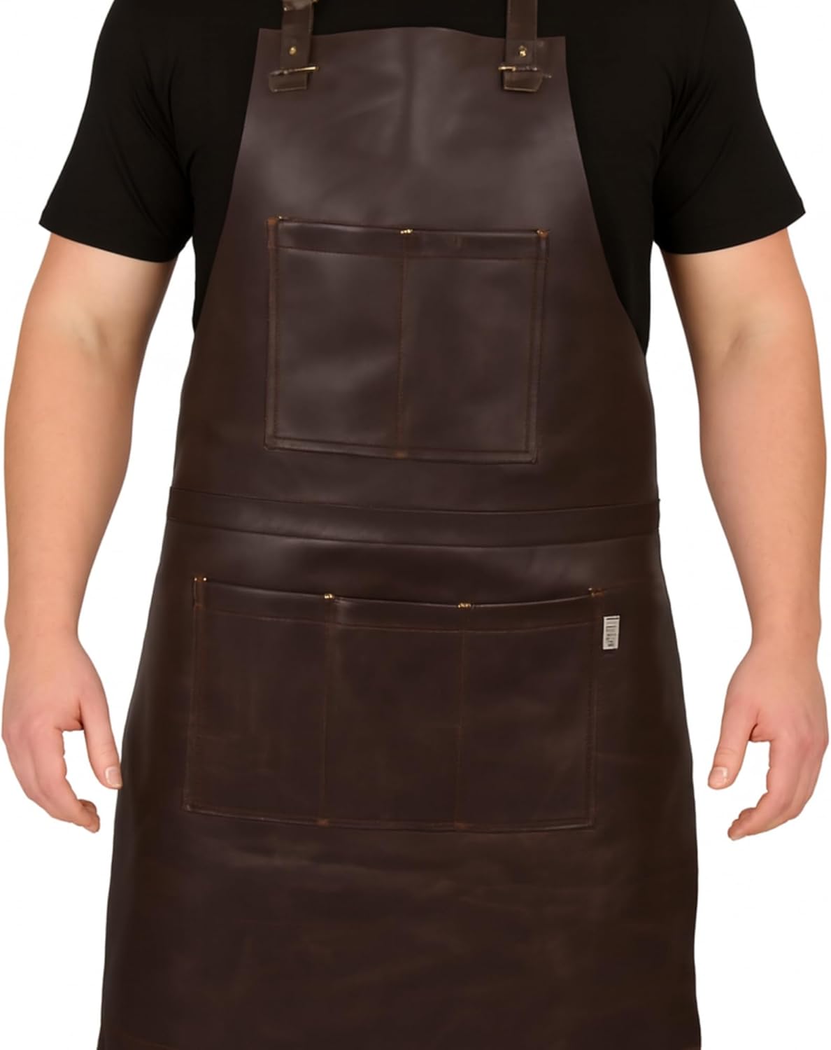 Product Description This premium full-grain leather apron is designed for cooking, grilling, crafting, and workshop use. The heavy-duty construction provides long-lasting durability while offering a stylish, professional look. Featuring dual front pockets and an adjustable neck strap, it delivers comfort, utility, and protection for both home and professional environments. Soft polyester lining on the inside enhances comfort during prolonged wear. Features Premium Genuine Leather Construction Crafted from high-quality real leather that offers superior durability and resistance to heat and splashes. Smooth finish gives a professional appearance suitable for kitchen, workshop, and outdoor tasks. Provides excellent coverage for front protection during work. Soft Polyester Inner Lining Designed with a comfortable polyester lining on the inside for reduced friction while wearing. Helps maintain airflow to keep you comfortable during long work sessions. Adds flexibility to the apron without compromising durability. Dual Utility Front Pockets Includes multiple front pockets for tools, utensils, pens, or small accessories. Stitched firmly to hold weight and frequent use securely. Provides quick access to essential items while working. Adjustable Neck Strap Design Adjustable strap allows for a customized and comfortable fit for different body sizes. Metal hardware ensures long-term durability and stability. Easy to modify for proper height and coverage. Reinforced Stitching for Durability Double-stitched seams increase strength against daily wear and tear. Built to withstand heavy usage in demanding environments. Prevents tearing and maintains long-term shape. Full-Coverage Protective Design Long apron length provides maximum protection from stains, splashes, and heat. Ideal for grilling, woodworking, crafting, and kitchen tasks. Offers a balanced combination of style and safety. Multi-Purpose Professional Use Perfect for chefs, baristas, craftsmen, and workshop enthusiasts. Real leather adds a premium and durable touch suitable for professional settings. Comfortable enough for daily use at home or work.
