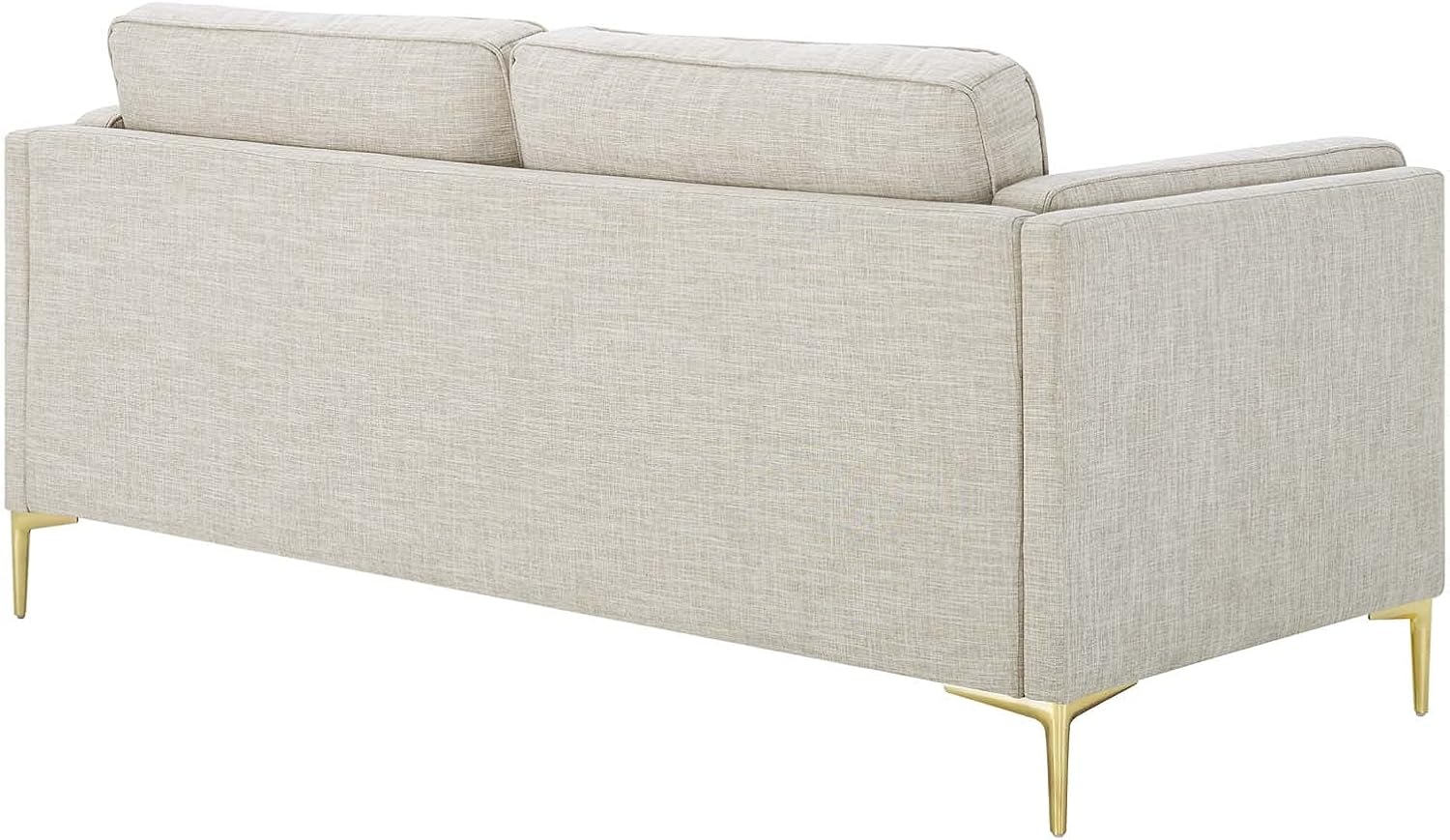 Invigorate your living space with rich tactiles and retro modern charm with the Kaiya Vegan Leather Sofa. Putting a contemporary twist on a classic mid-century modern design, this living room sofa features subtle French piping detail, a tailored profile, and gold metal accents. Covered in beautiful vegan leather, this upholstered sofa is padded with dense foam and complete with a sinuous spring support system to offer a premium seating experience. Resting on gold metal legs with non-marking foot pins, this vegan leather sofa features a solid wood construction for lasting durability. Assembly required. Sofa Weight Capacity: 900 lbs.