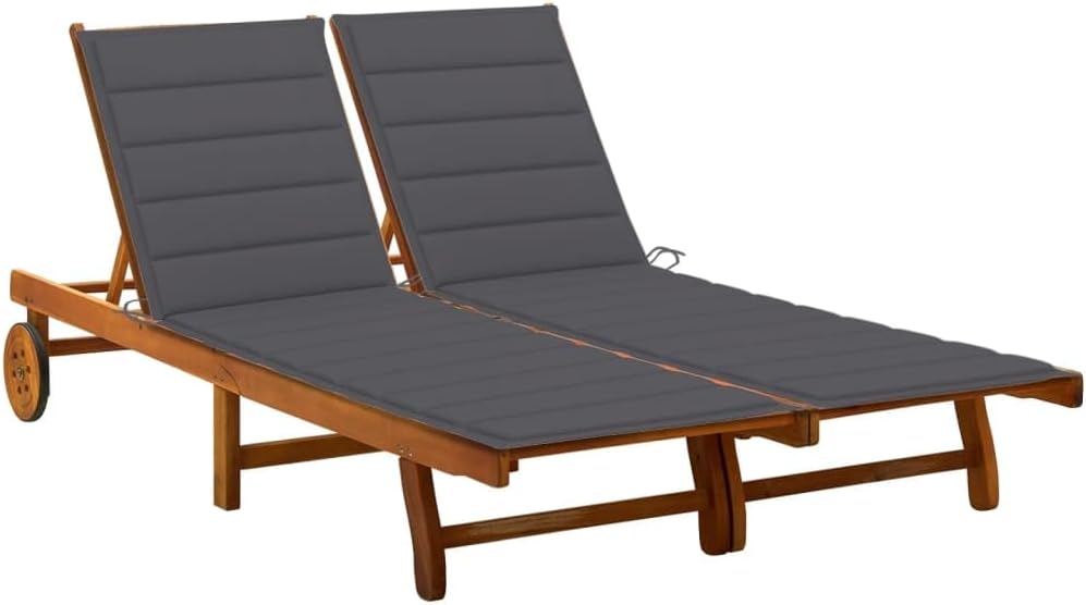 Relax and take a load off in your garden or patio on this comfortable wooden sun lounger! You can spend a relaxing afternoon in your own outdoor space. It is for a pool, balcony, garden, etc.This outdoor sun lounger is made of solid acacia wood, making it sturdy and stable. The backrest and footrest are adjustable, and you can lock the lounger into the desired position. This garden sun lounger can be easily moved around the house with equipped 2 wheels. The sunbed features a convenient pull-out table, to place your phone, sunglasses, drink and other small items. The cushion adds extra comfort for you while lounging. Each cushion features two sets of ropes so that you can fix it on the sun lounger tightly.Color of cushion: CreamMaterial: Solid acacia wood with an oil finishMaterial of cushion: Fabric (100% polyester)Dimensions: 78.7" x 24.8" x 11.8"/24.4"/29.9"/33.5" (W x D x H)Dimensions of cushion: 78.7" x 23.6" x 1.2" (L x W x T)Assembly required: YesDelivery contains:1 x Sunlounger1 x Cushion