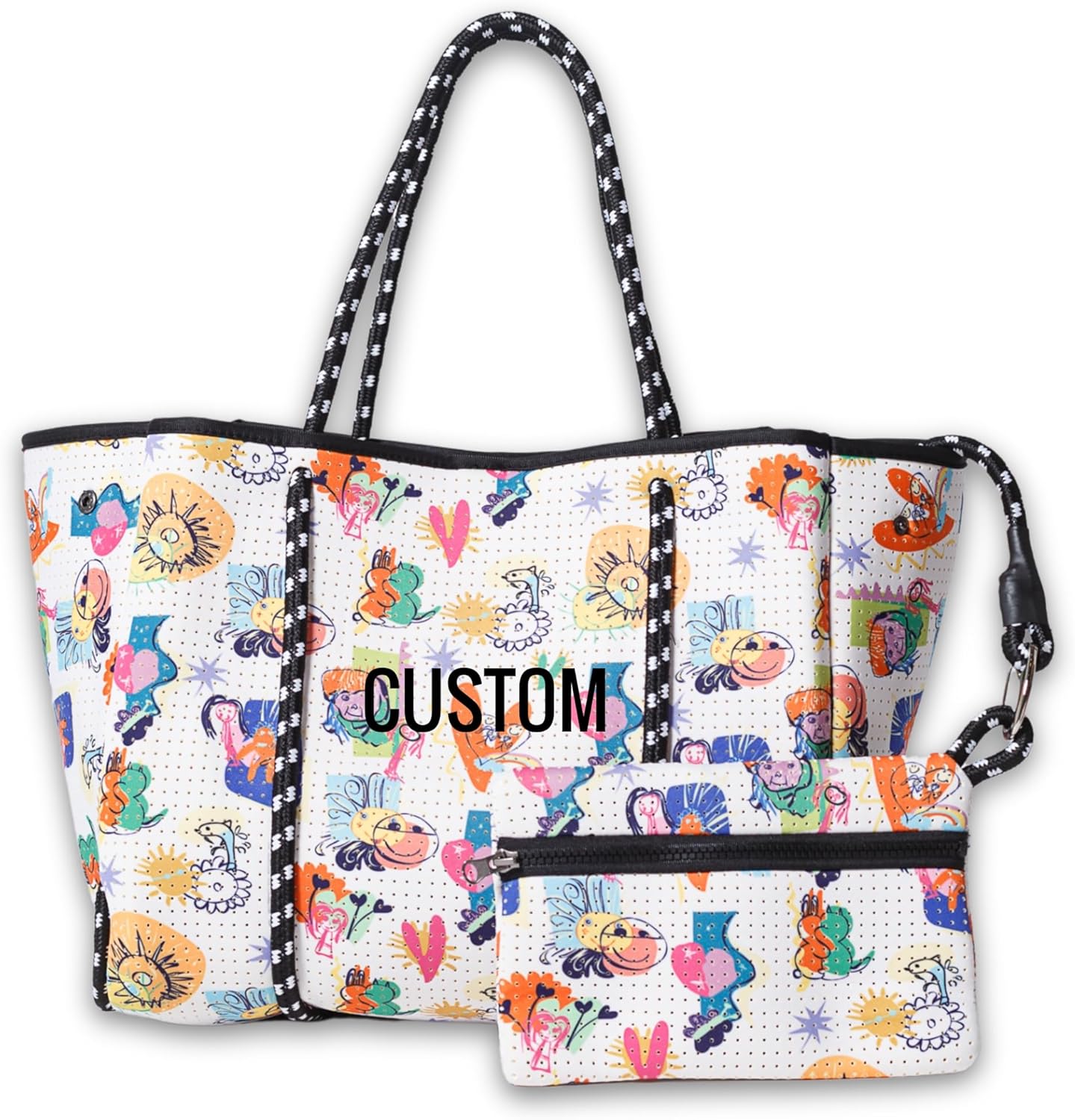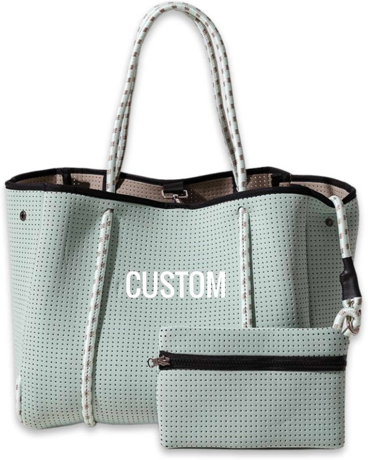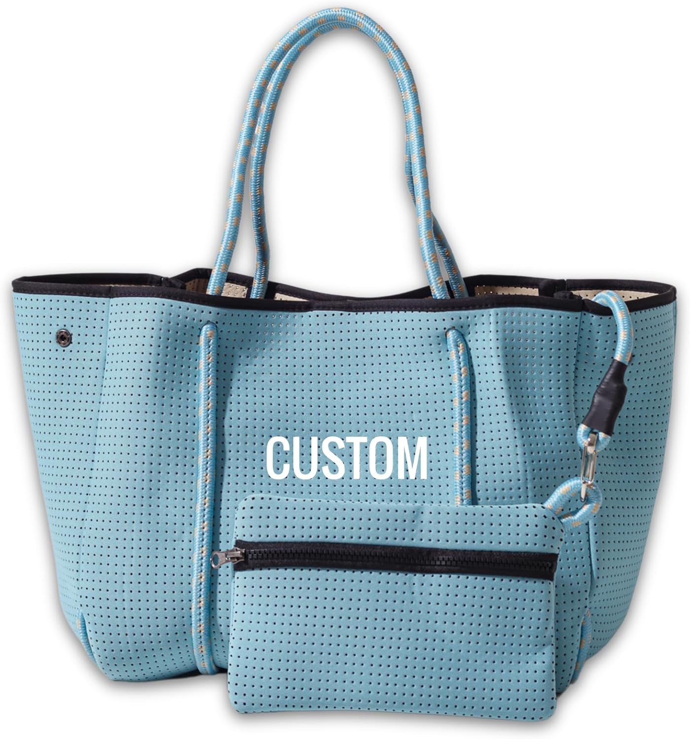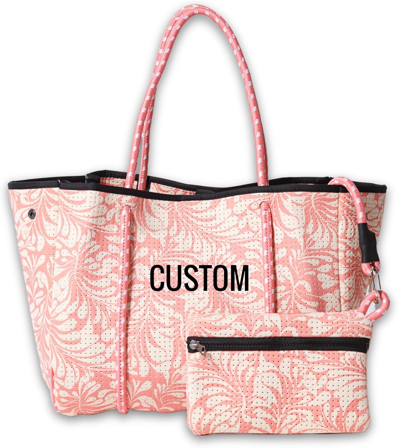 Personalize Your POPUPS! Make your bag extra special by choosing from a variety of fonts and colors, then customize it with a monogram, initials, or name—up to 6 characters max. The POPUPS Large Neoprene Tote Bag is the perfect combination of style, function, and versatility. Whether you need a beach tote, a mom bag, or a trendy carry-on for travel, this bag is designed to fit seamlessly into your lifestyle. Crafted from 100% luxe perforated neoprene fabric, it offers water resistance and breathability, making it durable and easy to maintain. The oversized yet lightweight design provides ample space for essentials like a laptop, gym gear, or art supplies while remaining compact enough for everyday use. Designed with thoughtful details, this tote includes a detachable zippered pouch, adjustable pockets, side buttons, and a removable insert for added structure. Available in a range of stylish colors, it’s a statement piece that transitions effortlessly from work to weekend. Easy to clean, this machine-washable neoprene bag air-dries flat, making it a convenient choice for daily use. Whether you're heading to the office, the gym, or the beach, this tote adapts to your needs, offering the perfect blend of fashion and practicality. Ideal for women balancing work, family, and everything in between, the POPUPS tote is a must-have accessory that you can now personalize for an extra special touch.