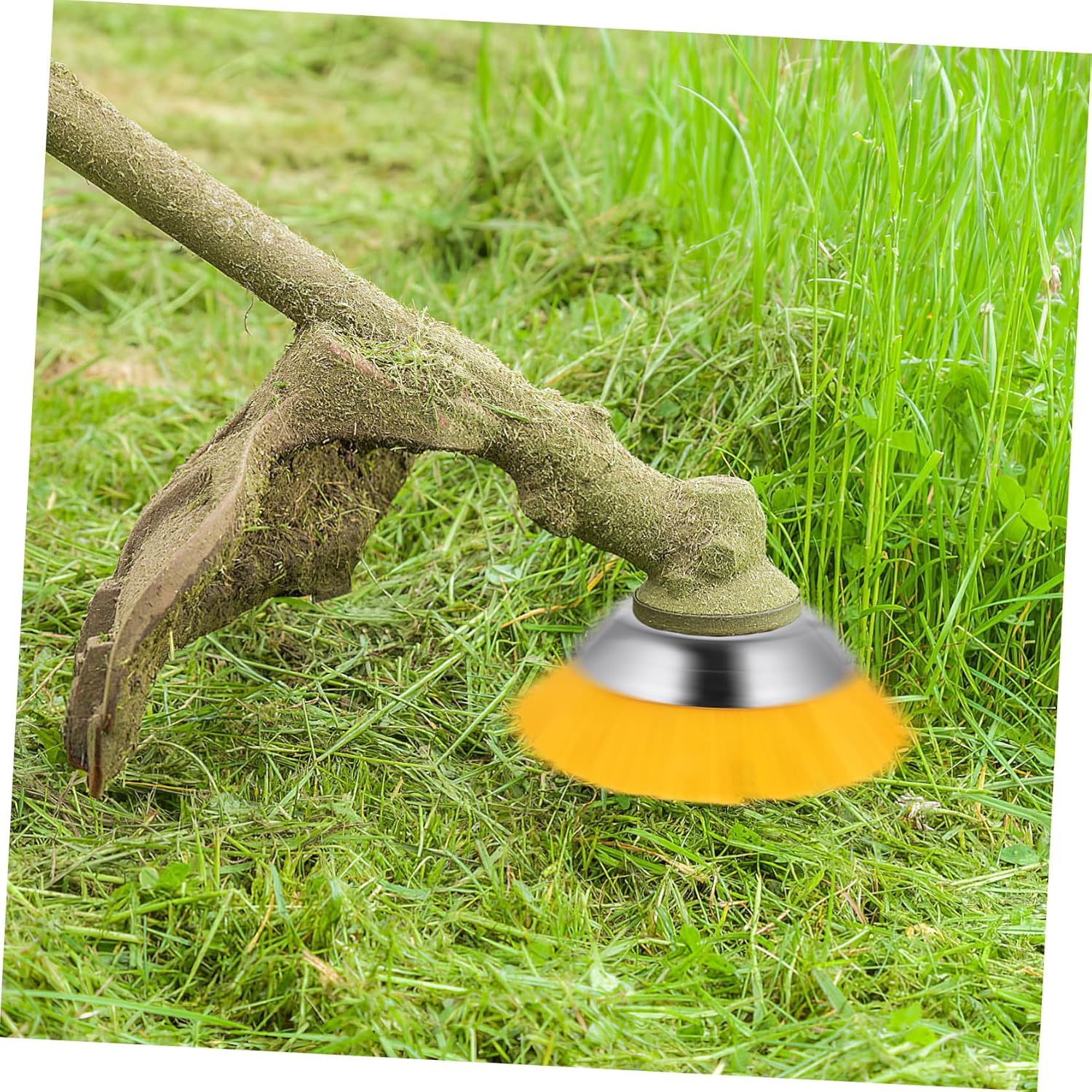 Package Include 1 x trimmer head 1 x set of attachments Characteristics - Safe to use: The nylon brush wheel with an internal fixed plate can protect you from splashing when you are weeding mowers. - Universal use: The nylon brush wheel is designed to fit most standard grass trimmers, easy to install and operate, making gardening easier cordless. -Size:20.00X20.00X5.00cm/7.86X7.86X1.97in attachment - Effortless weeding: The sturdy construction adds to the overall efficiency and effectiveness of the attachment, allowing for smooth and precise cutting edging. - Enhanced durability: The brush head is made from sturdy nylon materials, can work well with different thickness of grass trimmer head. -Color:Yellow Grass Mower Brush Head - Ease the fatigue: With its lightweight design, the nylon brush is easy to install and operate, reducing fatigue during extended use manual. -Material:Stainless steel, nylon Wire BrushGoods DescriptionLawn Mower Wheel Are you looking for a practical tool to clear your yard? Look no further than this product! Comes with multiple attachments that enhance its user-friendliness, the nylon brush wheel is incredibly easy to operate. brush head It is capable of tackling different tasks such as edging, pruning, and trimming in addition to its primary function of removal