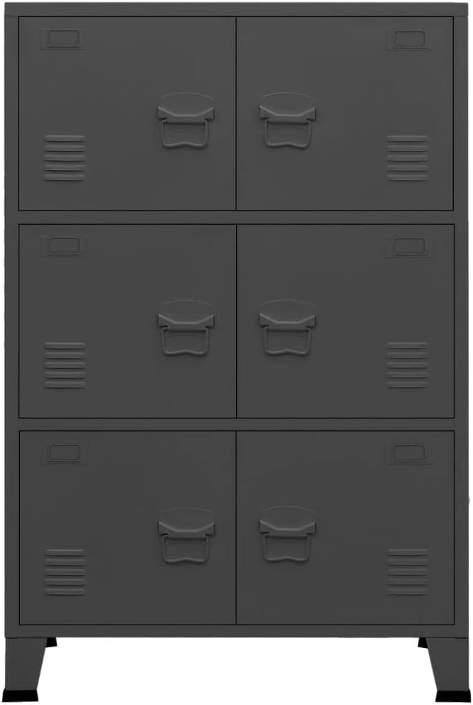 This industrial filing cabinet, with a typical design, is ideal for file storage.This office cabinet is made of metal, making it sturdy and stable. It has 6 doors, providing ample storage space to keep your files organized and within reach. Each door is equipped with a name tag holder and air vents, which allow you to neatly sort your files into different categories and underline the industrial look. Additionally, it is easy to clean with a damp cloth.Color: WhiteMaterial: MetalDimensions: 29.5" x 15.7" x 45.3" (W x D x H)2 shelves (not adjustable)With air vents and name tag holders on doorsMetal handleTotal loading capacity: 165.3 lbAssembly required: Yes