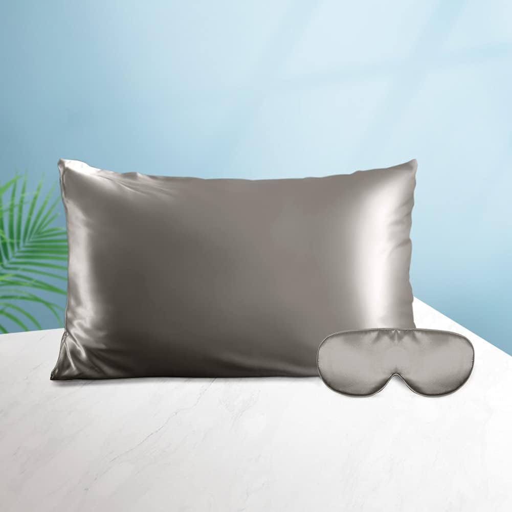 22 Momme 100% Mulberry Silk pillowcase eye mask Made from natural organic mulberry silk More soft and comfortable Regulate the body temperature Improve sleep quality SILK contains 18 kinds of natural amino acids, smooth texture, rich luster, suitable for all seasons Soft & Comfortable: Silk is softer, smoother and more comfortablethan cotton,and can effectively improve sleepquality Hypoallergenic: It contains no chemicalingredients and doesnot cause skin problems Breathable: Suitable for direct contact with human skin