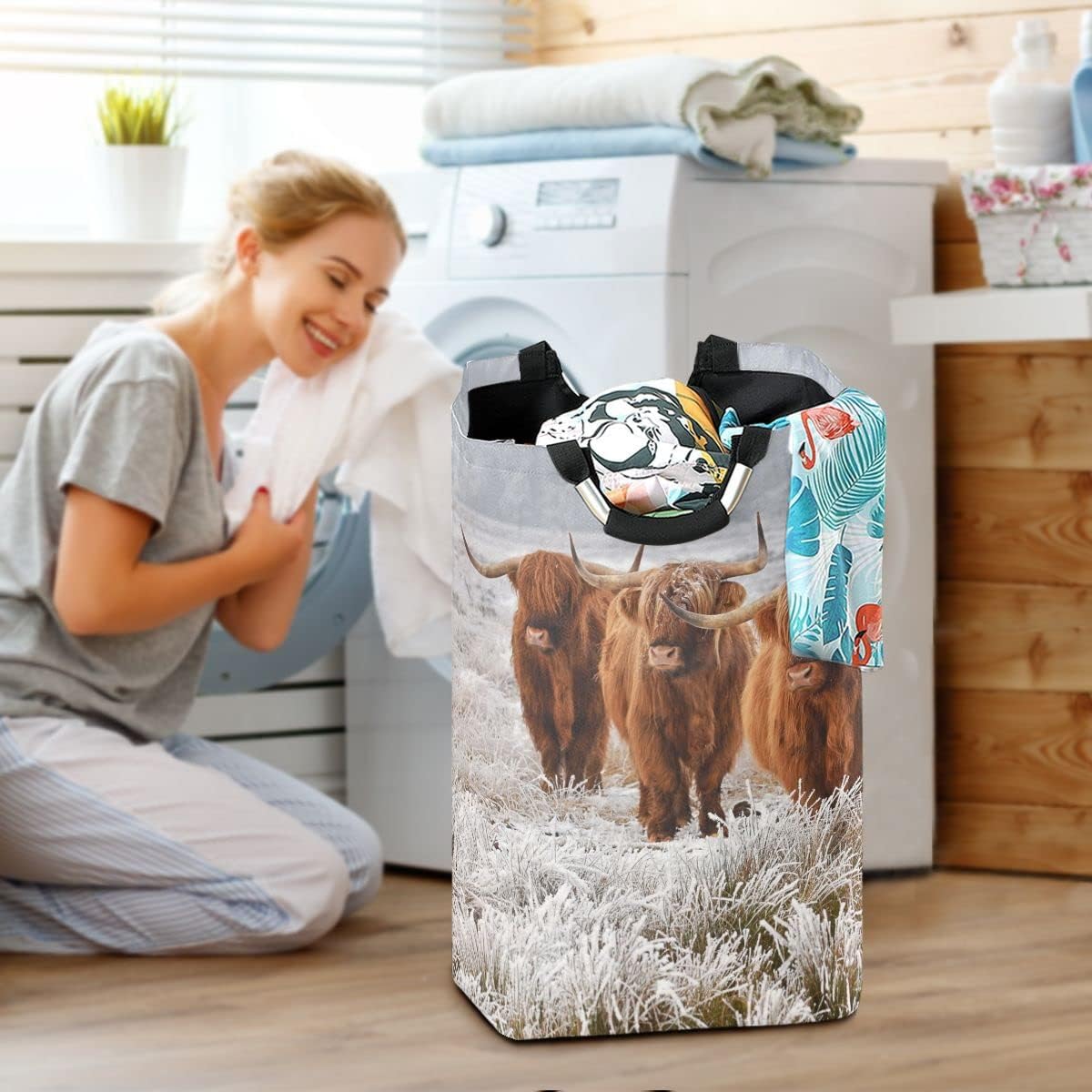 Product Specifications:High capacity:Size: 12.6''(L) x 11''(W) x 22.7''(H) / 32 x 28 x 57.5 cmPremium Material:Material: Oxford Cloth (Polyester) / FabricWhy choose us?"Linqin" is a professional customized home storage basket designer and manufacturer. We produce versatile super large size storage bins with vibrant color and cute elegant patterns. It is a perfect decoration to nursery, kid¡¯s room, playroom, bedroom, apartment, living room, laundry room and your unique home.Our jumbo decorative laundry hampers are big enough to store bulky items like clothes, blankets, pillows, linens, baby products, kid toys, dog & cats toys, and more while offering plenty of space to organize all your small essentials to help you keep your home neat and tidy! The outer layer of the home storage basket is made of durable oxford cloth, the inner layer is made of waterproof PE coating fabric. The lightweight fabric allows you to take your basket go with ease. Even if it is not in use, it can be folded and put in the drawer or on a shelf as a decoration. Store it effortlessly, taking little space!Enjoy an organized, clutter-free home with our simple, yet stylish cotton rope baskets. Order yours now and say good-bye to clutter and mess today!Warm Tips:This laundry hamper is not machine washable, just wipe it with a wet sponge or cloth. The laundry basket comes with compression packaging, which may cause wrinkles during long-distance transportation. This is normal and it will recover after a period of time. It can also be removed with a hair dryer and steam iron.